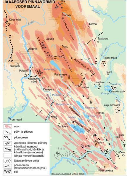 Voorte suund näitab -- Vali -- -- Vali -- tektooniliste lõhede suundamandrijää liikumise suunda pealetungilliustikujõgede voolamise suunda.