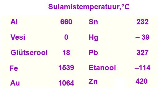 Allpool on näidatud mõnede ainete keemistemperatuure ja tundmatu aine temperatuuri muutumise graafikut (soojendamine ja sulamine).