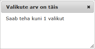 Lubatud valikute arv võib olla piiratud. Kui on lubatud valida näiteks üks vastus, kuid lahendaja üritab valida veel üks, ilmub järgmine teade: