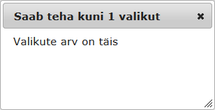 Valikute arv võib olla piiratud. Kui on lubatud näiteks üks valik, kuid lahendaja üritab valida veel ühe vastuse, ilmub järgmine teade: