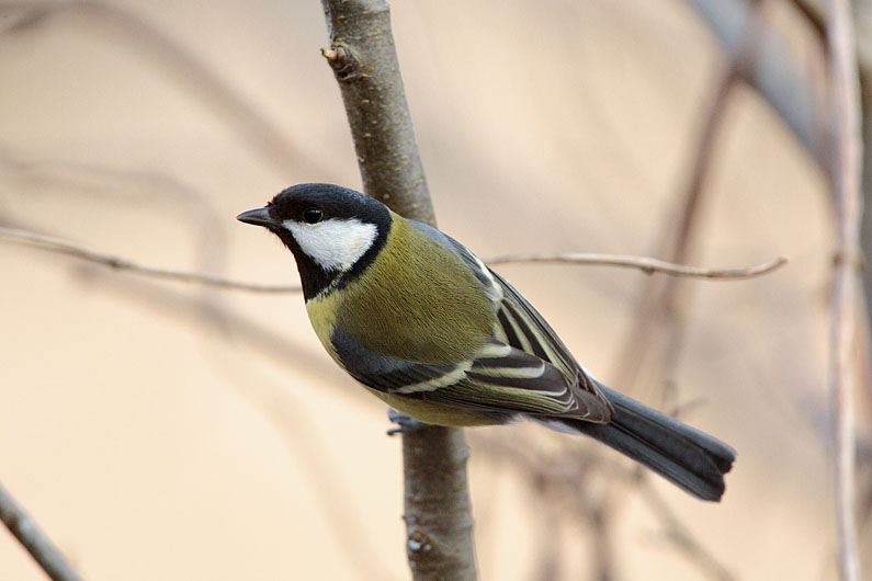 Äratuntav musta kesktriibuga kollase alapoole, suure valge põselaiguga läikivmusta pea, samblarohelise selja ja kitsa vöödiga sinihallide tiibade järgi.