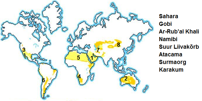 kõrbete teadmine kaardil